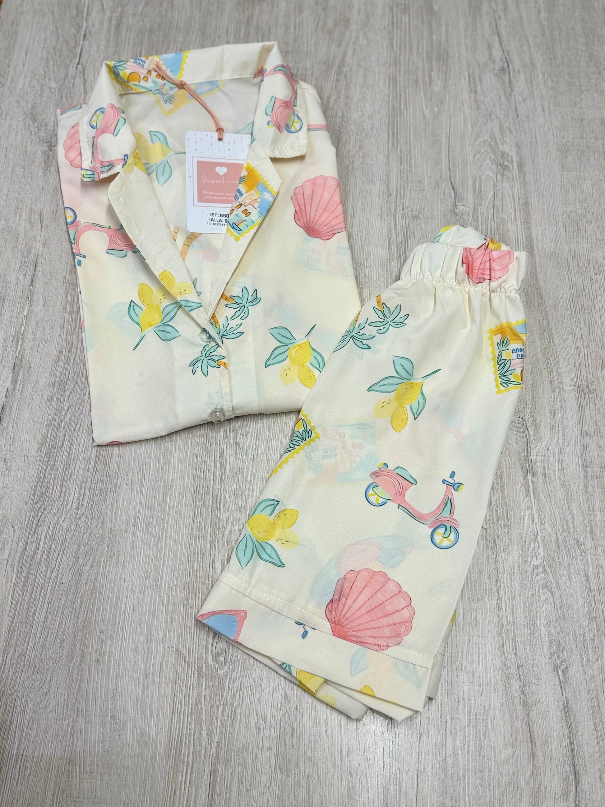 Pijama short/Blusa botones en seda